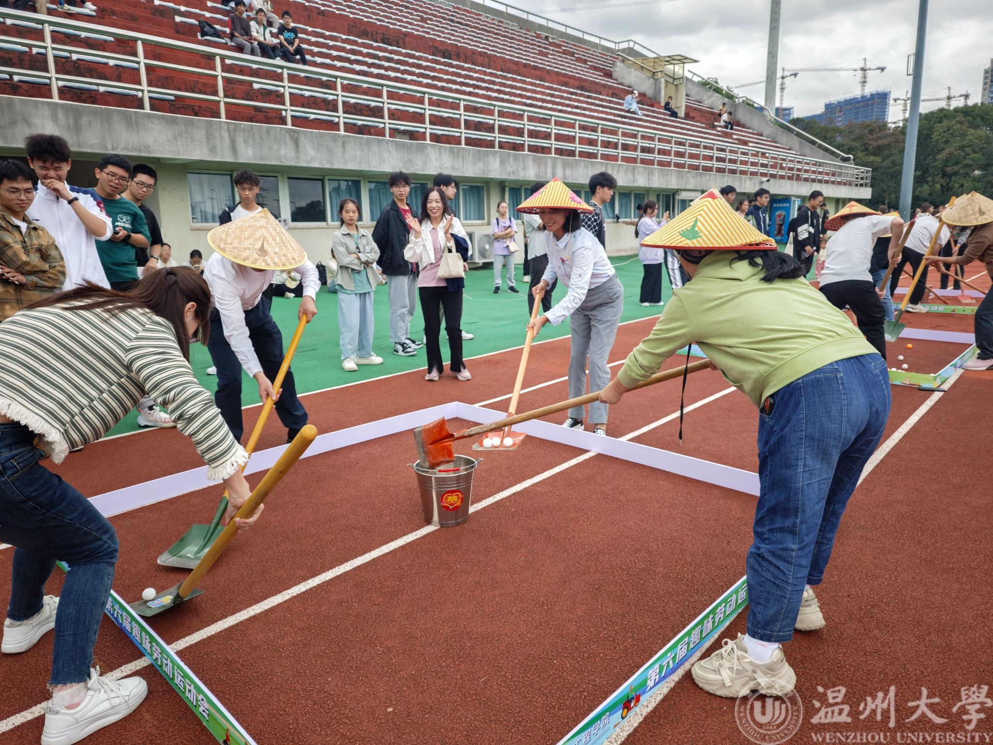 整地大比拼中,“责任田”里的乒乓球要被四位师生快速送入桶中,这个环节主要比拼灵活性和配合度,快速完成的队伍,高高举起双手,展现出胜利者的骄傲。