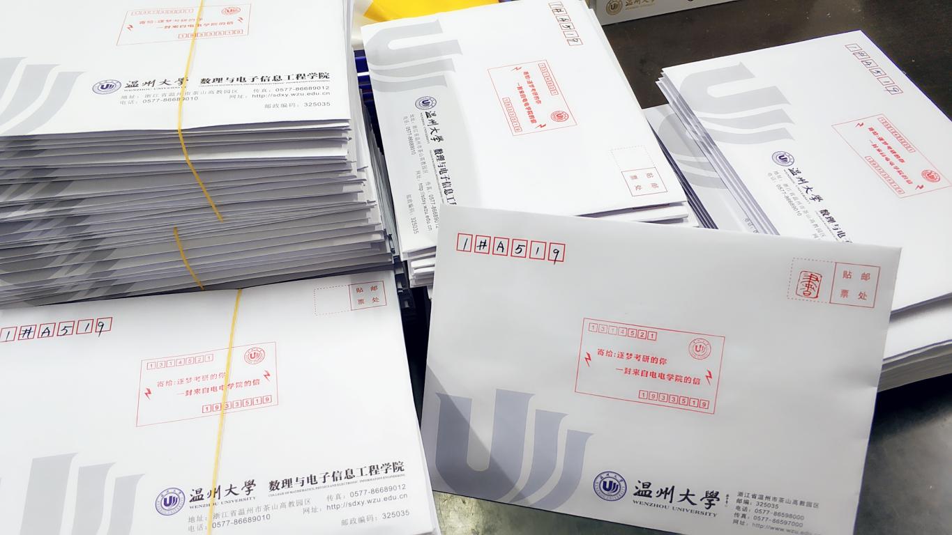原来,特殊快递是一封书信,在信封的正面上,写着收件人“逐梦考研的你”,寄件人“温州大学电电学院”,信封里装的是考研时间点流程图、研招网报流程图和一沓5页信纸,字数长达3000字的手写信。