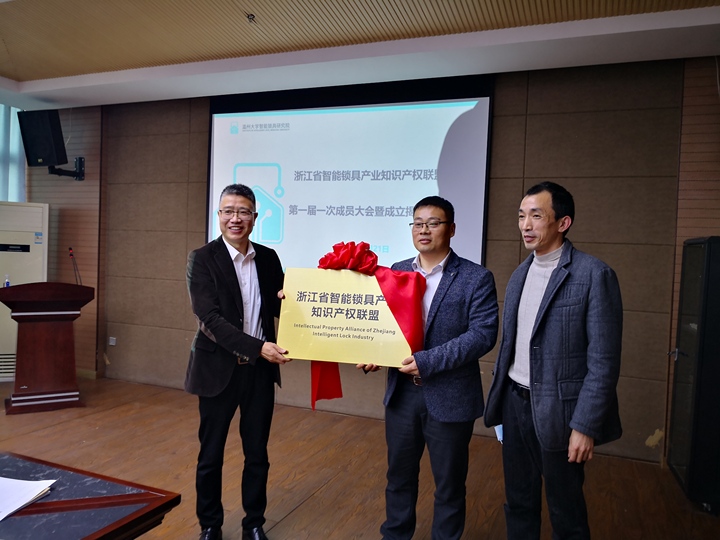 浙江省智能锁具产业知识产权联盟由温州大学智能锁具研究院联合温州知识产权大港湾、浙江凯迪仕实业有限公司、浙江天宇工贸集团有限公司、浙江因特佳智能科技有限公司等14家单位共同发起,联盟涵盖了科研院所、智能锁具龙头企业、锁具产业上下游企业、知识产权服务机构等全产业链。