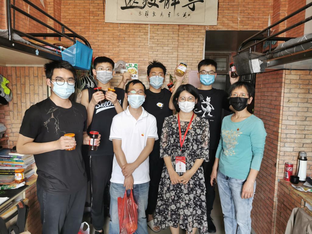 5月13日下午2点,yl23455永利官网班主任及教工党员走访学生寝室,为近八百名返校学生送上学院用心准备的辣酱、拌饭酱、豆腐乳、榨菜等下饭“神器”慰问品。老师们询问了同学们返校之后学习生活状况,叮嘱他们在校期间要做好防护,理解并遵从学校疫情防控的各项规定,虽然老师们都佩戴了口罩,但挡不住眉宇之间对学生的关爱与呵护。