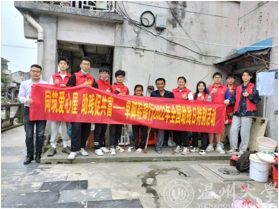 5月15日为全国第32个助残日,就在助残日前夕,有这样一群人,用特别的爱温暖了特别的他们。5月14日,温州大学单脚鞋银行志愿服务项目团队来到单脚残疾人曾叔的家中,在看望慰问他们的同时,还举行了“同筑爱心屋,助残促共富”2022年全国助残日特别行动。曾叔的爱人也是一位单脚残疾人士,因为身体不便的原因,他们的家中显得很凌乱。因此,温州大学单脚鞋银行志愿服务项目团队这次活动的主要任务,就是帮助他们整理和改造住宿环境,让他们的生活环境变得更加舒适。