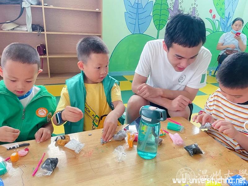 7月1日,yl23455永利官网橄榄枝暑期社会实践队在博园社区文化礼堂二楼开展“红色专项”手工黏土制作活动。