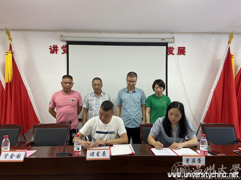 紧接着,双方举行党建签约仪式。在温州大学电气电子学院和舜岙村领导的见证下,温州大学电气电子学院行政教工党支部和舜岙村党支部就党建共建、社区防疫、劳动教育、社会实践活动、党建宣传等方面签订了合作协议。