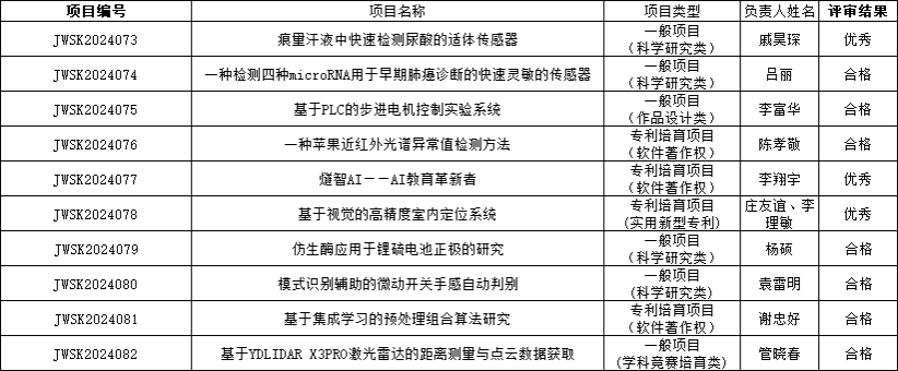 根据《温州大学实验室开放项目资助基金使用和管理办法(试行)》(行政〔2007〕71号)和《关于做好温州大学2024年度实验室开放项目结题工作的通知》的精神。现将2024年度实验室开放项目结题结果予以公示,公示至6月12日。如有疑问,请及时与教学科联系,联系人:张霞,联系电话:86689020。