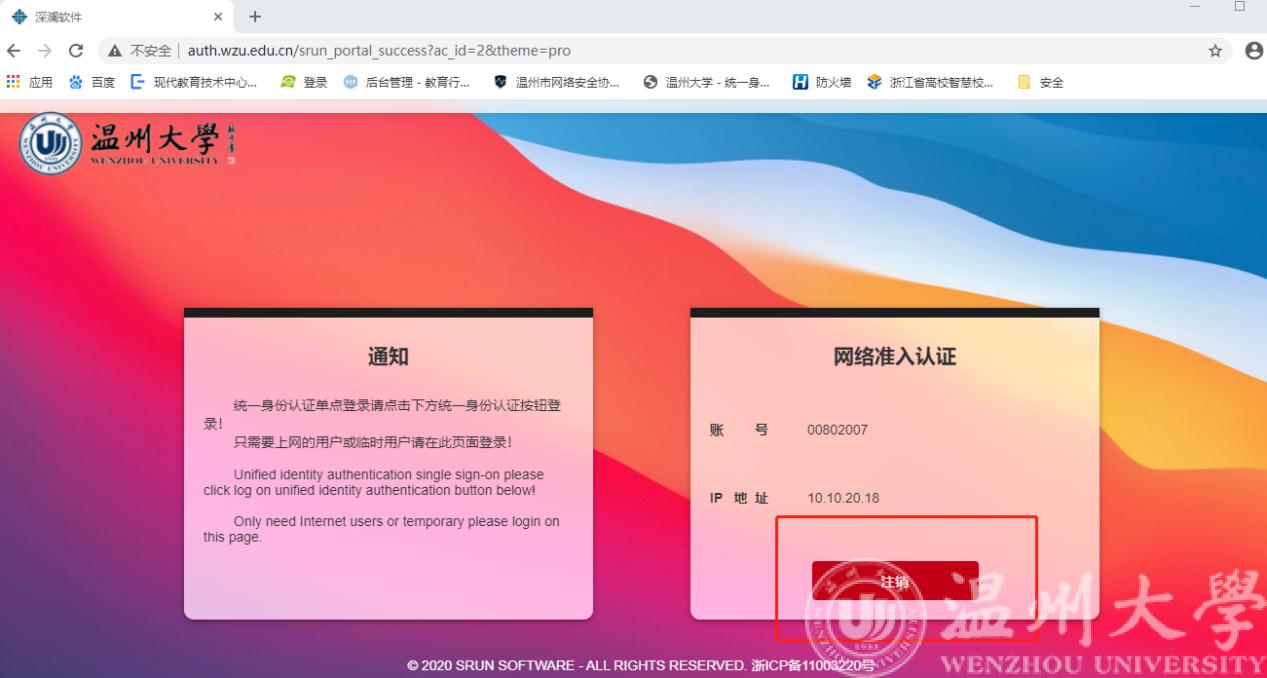 准入网址http://auth.wzu.edu.cn里有注销按钮。
