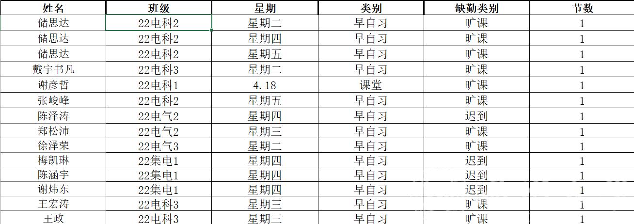 2023年4月24日至4月30日,学院学纪就业部对本院5个班次学生上课情况进行抽查。抽查情况反映如下: