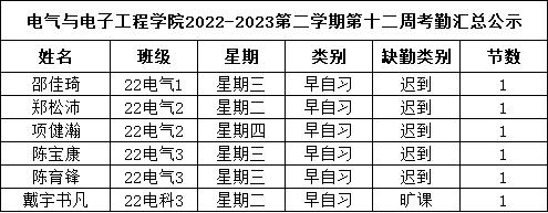 表1 2023.5.8-2023.5.12学院学风检查情况