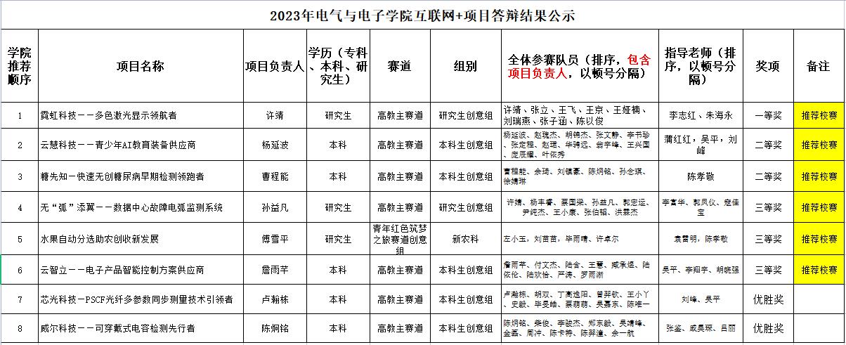 学院于2023年5月17日下午进行了”互联网+“大学生创新创业大赛入围项目评比,经过同学们的答辩和评委提问环节,共遴选出6个项目参加学校比赛,其他获奖奖项如下表所示,特公示三天(5月17日-5月20日),有异议请联系教务科张霞老师,86689020。