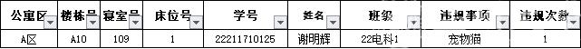 根据学校学生公寓安全“四级联查”工作机制要求,学工部、研工部、后勤管理处、保卫处、资产公司联合于5月23日对学生公寓区进行安全情况大检查。我院有1名同学出现公寓违规情况: