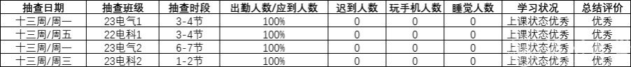 表2 2023.12.04-2023.12.10 十三周 学院学风抽查情况