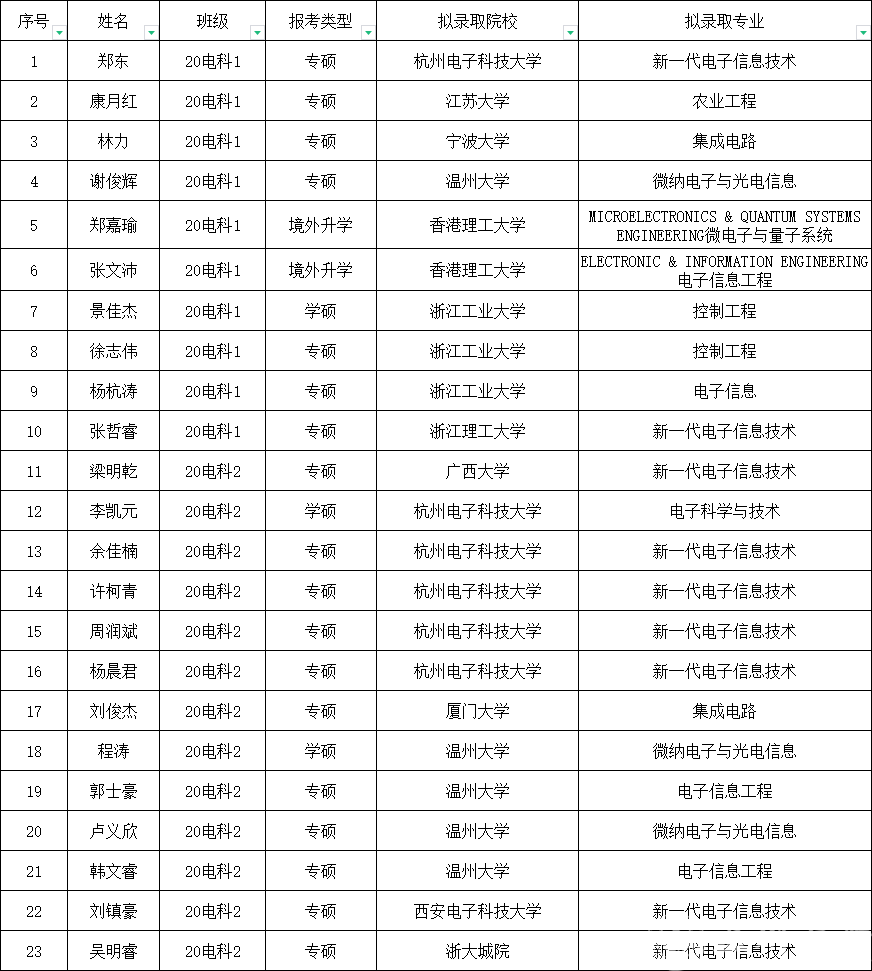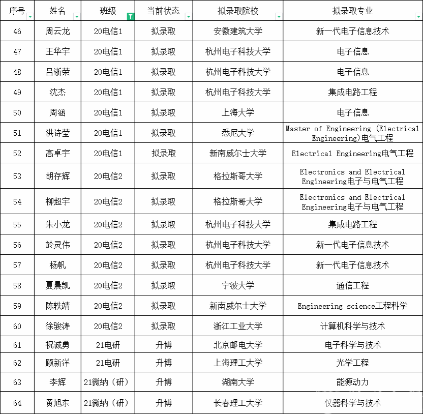 根据《yl23455永利官网“聚创奖学金”评定办法》文件精神,结合我院实际,学院将本年度考取硕士研究生、博士研究生及出国留学的64名同学直接评定为第五届“聚创奖学金”升学奖获得者。现将名单予以公示,请同学们核对录取的院校、专业以及类型,有误请在下方收集表填写中反馈。公示三个工作日,如有异议请于公示期内与学工办联系。