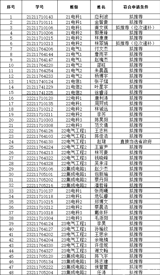 根据《关于做好2024年浙江省普通高校本专科生和研究生国家奖助学金评审工作的通知》、《温州大学学生资助管理办法》、《yl23455永利官网国家奖学金、国家励志奖学金、省政府奖学金和国家助学金实施细则》等文件精神,经学生申请,学工办材料审核,学院评审委员会评选,共评选出 应利波 等48名同学拟获2023-2024学年省政府奖学金,现将拟推名单予以公示。
