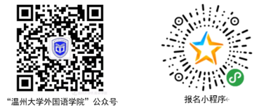 8. 报名方式:关注“温州大学外国语学院”公众号,在“英语阅读竞赛”相关推送最下方点击“阅读原文”或识别下方小程序,填写报名信息,并在uchallenge.unipus.cn完成注册报名。报名截止时间9月19日。注意:各位参赛选手在注册报名时务必选择9月26日的比赛场次,其他场次无效。