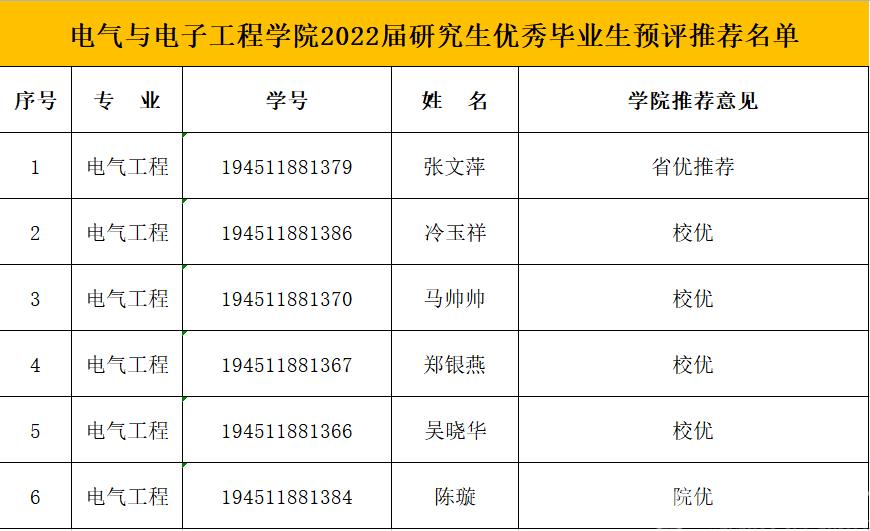 根据《温州大学研究生优秀毕业生评选办法》(行政〔2019〕225号)、《yl23455永利官网研究生优秀毕业生评选细则》文件精神,经学生个人申报、材料审核、学院研究生评审委员会联评,现将本次预评推荐学生的完整名单公示如下: