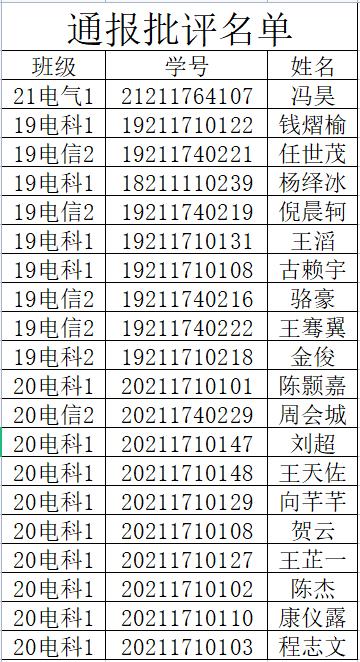 根据学校排查、学院学工办核实,有以下同学没有遵守温州市和我校疫情防控要求:核酸检测间隔时长超72小时。根据《温州大学新冠肺炎疫情防控期间学生纪律处分暂行规定》,结合学院实际,给予以下同学全院通报批评。