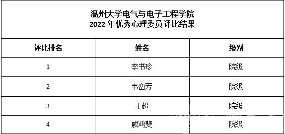 本次评比结果做为校级优秀心理委员推荐依据,依照学校下发各学院校级优秀心理委员名额,按本次排名依次推荐为校级优秀心理委员,不再另行评选。