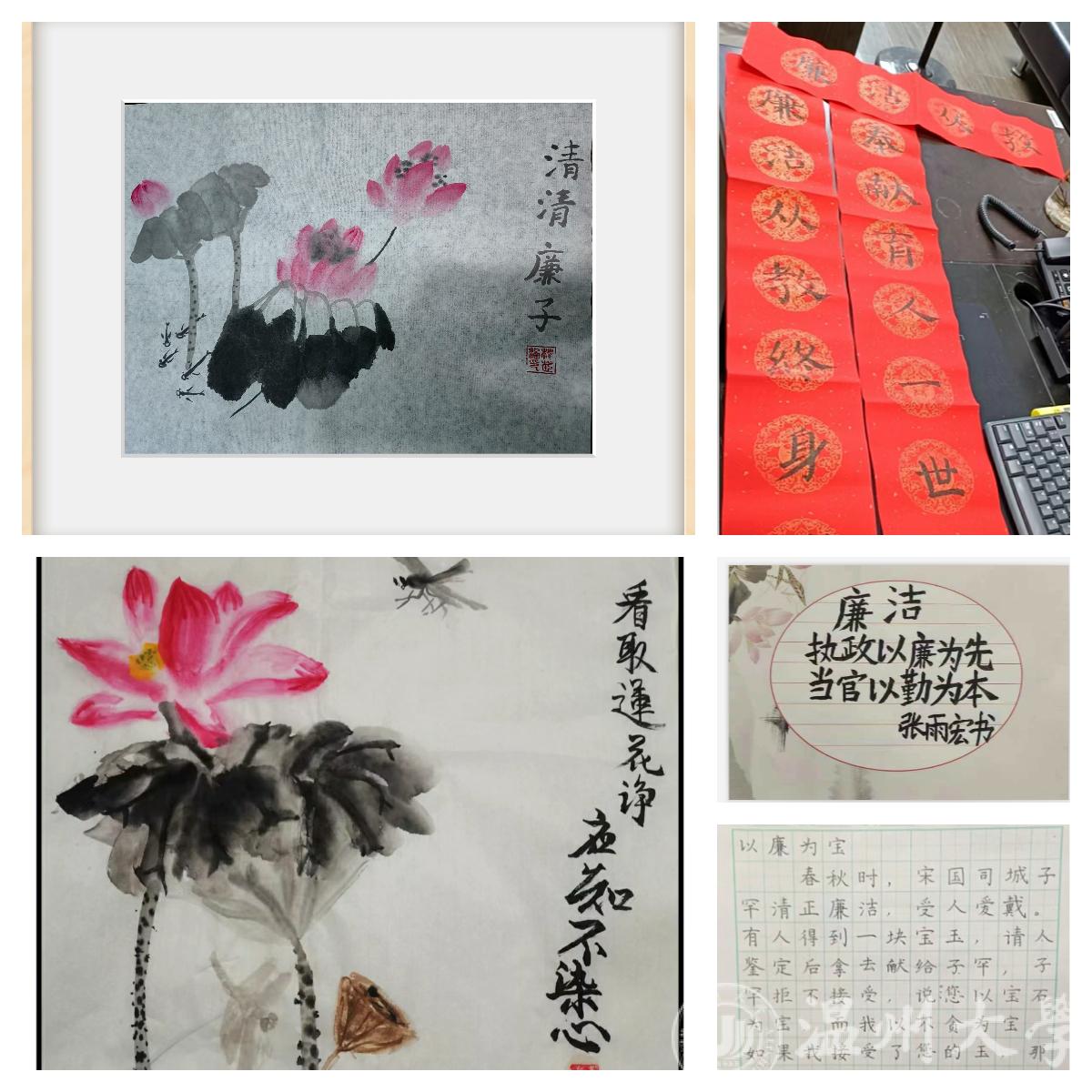 经过前期各系的积极宣传,最终宋元平老师撰写的《于成龙和糠粥的故事以及疑似鲁迅先生说》、章回老师亲子清廉小故事视频《不贪为宝》、金海艳老师亲子国画《清“莲”说》、张正江老师亲子书法《廉洁》等12位老师的作品获得了评委的一致好评,获得优秀奖励。