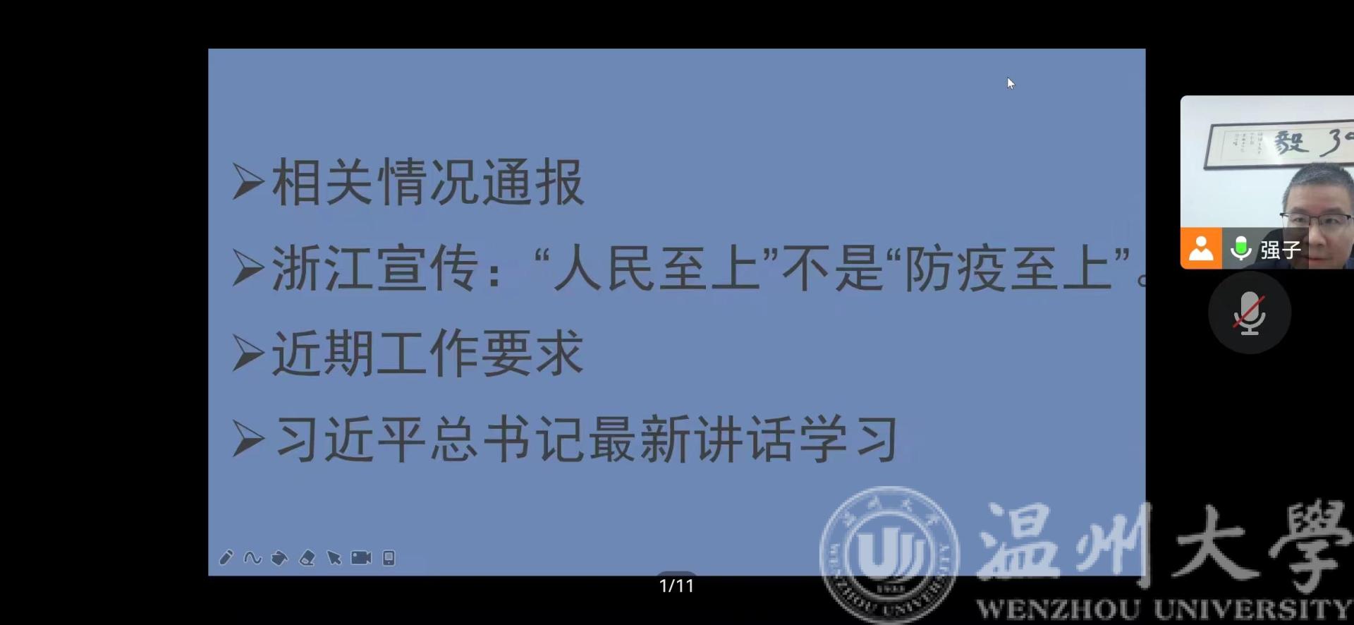 11月30日下午,yl23455永利官网召开了疫情防控和校园安全稳定工作专项视频会议暨教工理论学习会,会议由学院党委书记李方强主持,全院教职工参加会议。