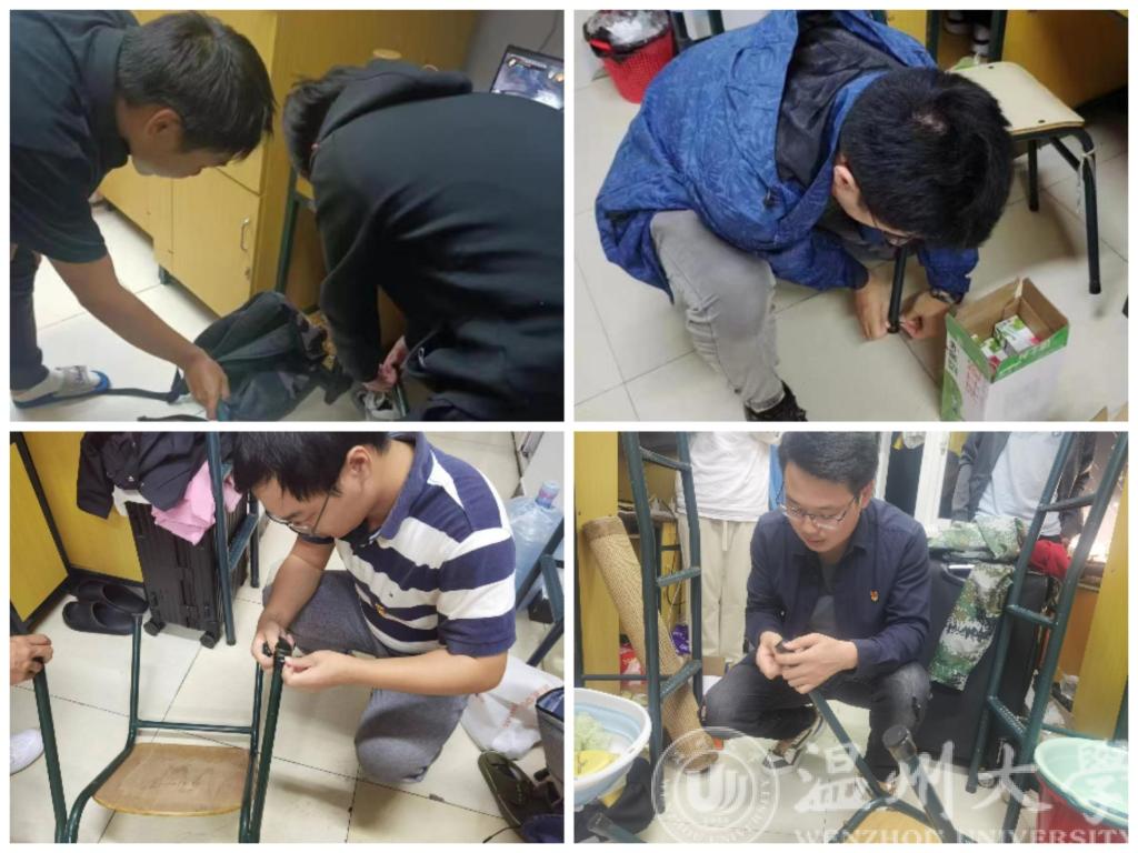 “你们真是太给力了,现在终于不用担心自己挪动椅凳的噪音影响到室友和楼下同学的学习生活了。”来自电气工程专业的陈同学与正在宿舍安装静音脚垫的学生党员们聊起了在开学初学院领导走访调研学生寝室时,他反映了一个目前寝室急需解决的现实问题,那就是室里的椅子挪动时经常发出异响,影响彼此学习生活。“事虽小,却暖心!‘给椅凳穿新衣’这件实事真是办在了学生心坎上。”在安装完静音脚垫后,党员们再三检查,做好了最后的打点,并表示这次党员实践活动很有意义。“为全体学生寝室的椅凳安装静音脚垫,是从细微着手破难题,打造静音宿舍,让学生安心潜精研思的有力举措,更是一次暖人心的‘惠生’行动”。来自yl23455永利官网本科生第二党支部书记、辅导员潘龙飞说。