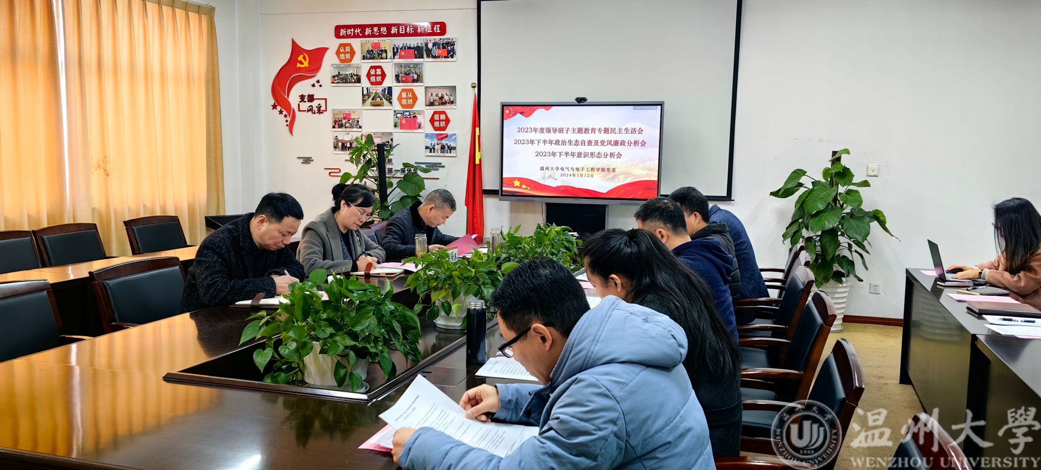 按照省委、市委和校党委有关部署要求,1月12日,我院党委召开2023年度领导班子学习贯彻习近平新时代中国特色社会主义思想主题教育专题民主生活会暨下半年党风廉政建设和意识形态分析会。学院全体领导班子成员出席会议,校党委副书记赵降英全程参会指导,校主题教育巡回督导组成员、学院相关负责人列席会议,会议由学院党委书记李方强主持。