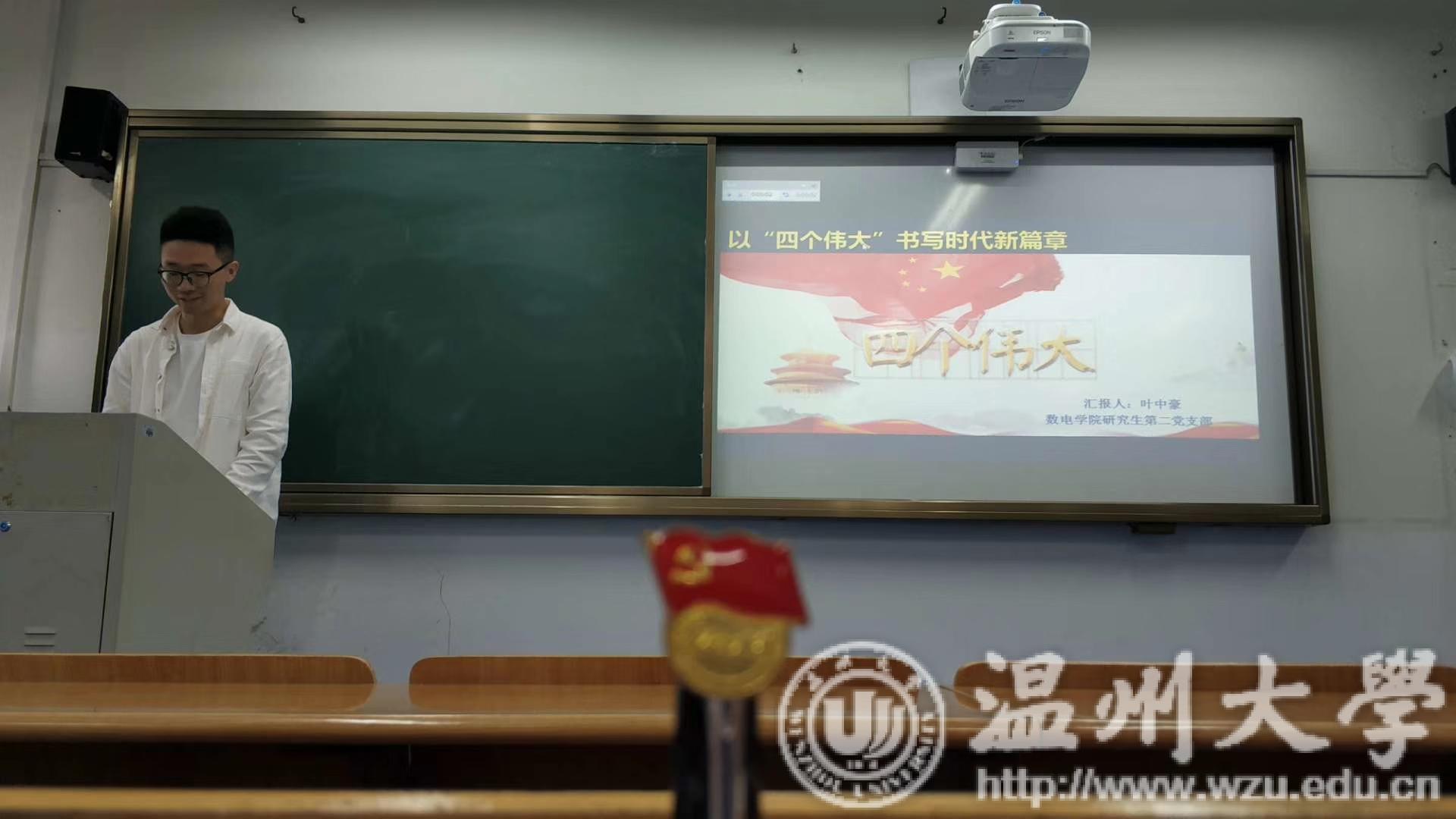4月19日上午,我院研究生微党课比赛在5A204举行,学院6名研究生党员参加比赛,学生科辅导员乔婉莹老师、岳通通老师,各研究生党支部书记担任评委。