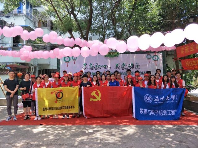 2018年6月17日上午,由温州市鹿城区民政局主办、温州大学数电学院阳光使者志愿服务中心承办、鹿城区洪殿社区协办的主题为“不忘初心、关爱功臣”的活动顺利开展。鹿城区优抚对象端午活动暨集体生日会在鹿城区洪殿长寿老人公寓举办,参加此次活动的扶优活动的代表主要有鹿城区民政局副局长郑乐斌、温州大学数电学院党委副书记林爱菊老师、鹿城区民政局优抚科高伟、洪殿社区党委书记兼社区主任李开珍、温州市瓯海区阳光使者志愿服务中心指导老师林丽丽老师,此次活动还包括70名鹿城区优抚对象、温州大学数电学院阳光志愿者、数电学院研究生党员、超豪学区第一支部和研究生第五支部部分入党积极分子组成的志愿者。