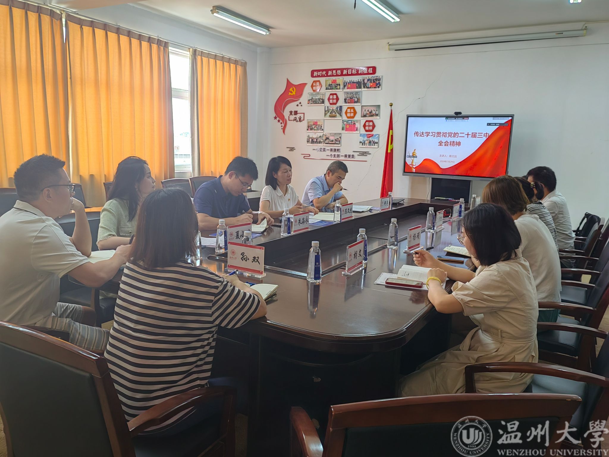 7月29日上午,我院召开党委理论学习中心组(扩大)会议,传达学习党的二十届三中全会精神,研究部署学院贯彻落实工作。学院党委书记、副院长陈文远主持会议。