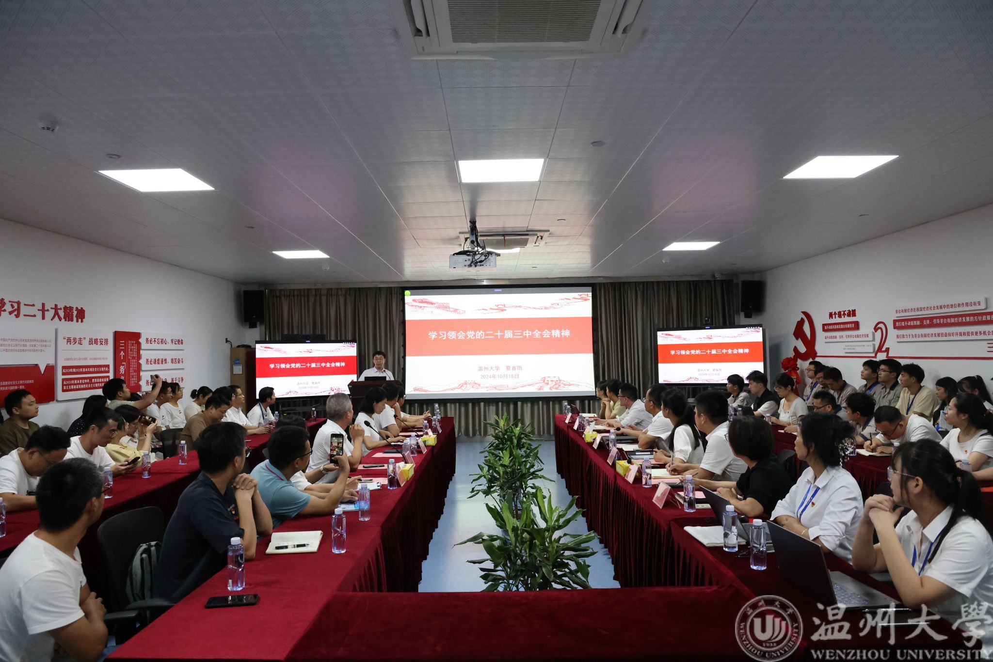 活动现场,双方代表共同参观了温州宏丰党建文化展示厅和公司展示厅,重温了入党誓词。学校与企业一同举行了校企“联合实验室”及“温州大学就业实习基地”的授牌仪式。最后,大家集聚一堂,共同聆听温州大学党委委员、组织部部长夏春雨讲授《深入学习领会党的二十届三中全会精神》专题辅导报告。yl23455永利官网党委书记陈文远表示:“yl23455永利官网与温州宏丰电工合金股份有限公司联合开展‘五联五促’主题党日活动,是深入开展产教融合党建联盟的一次生动实践。学院将以此次专题活动为契机,加强与宏丰党支部的结对共建,探索校企合作在新时代背景下的新模式和新路径。实现党建工作与业务发展‘同频共振’,共同开启产教融合党建联盟新样态。”