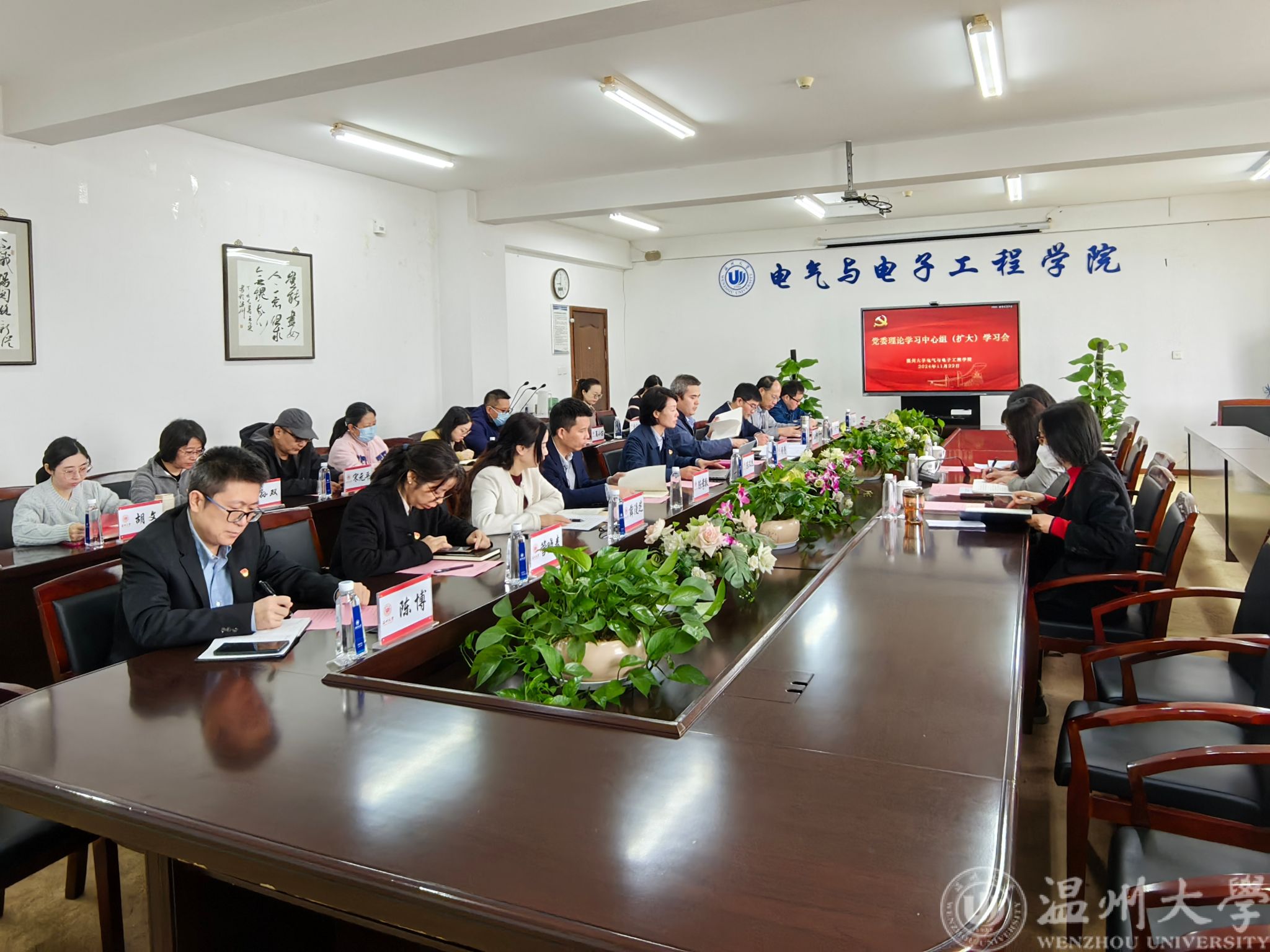 11月22日上午,yl23455永利官网召开了党委理论学习中心组(扩大)学习会。温州大学党委委员、统战部部长吴静一行到场参加巡听旁听。学院党政班子成员、专职组织员、教师党支部书记、各科室负责人、群团组织相关人员参加学习会。会议由学院党委书记陈文远主持。