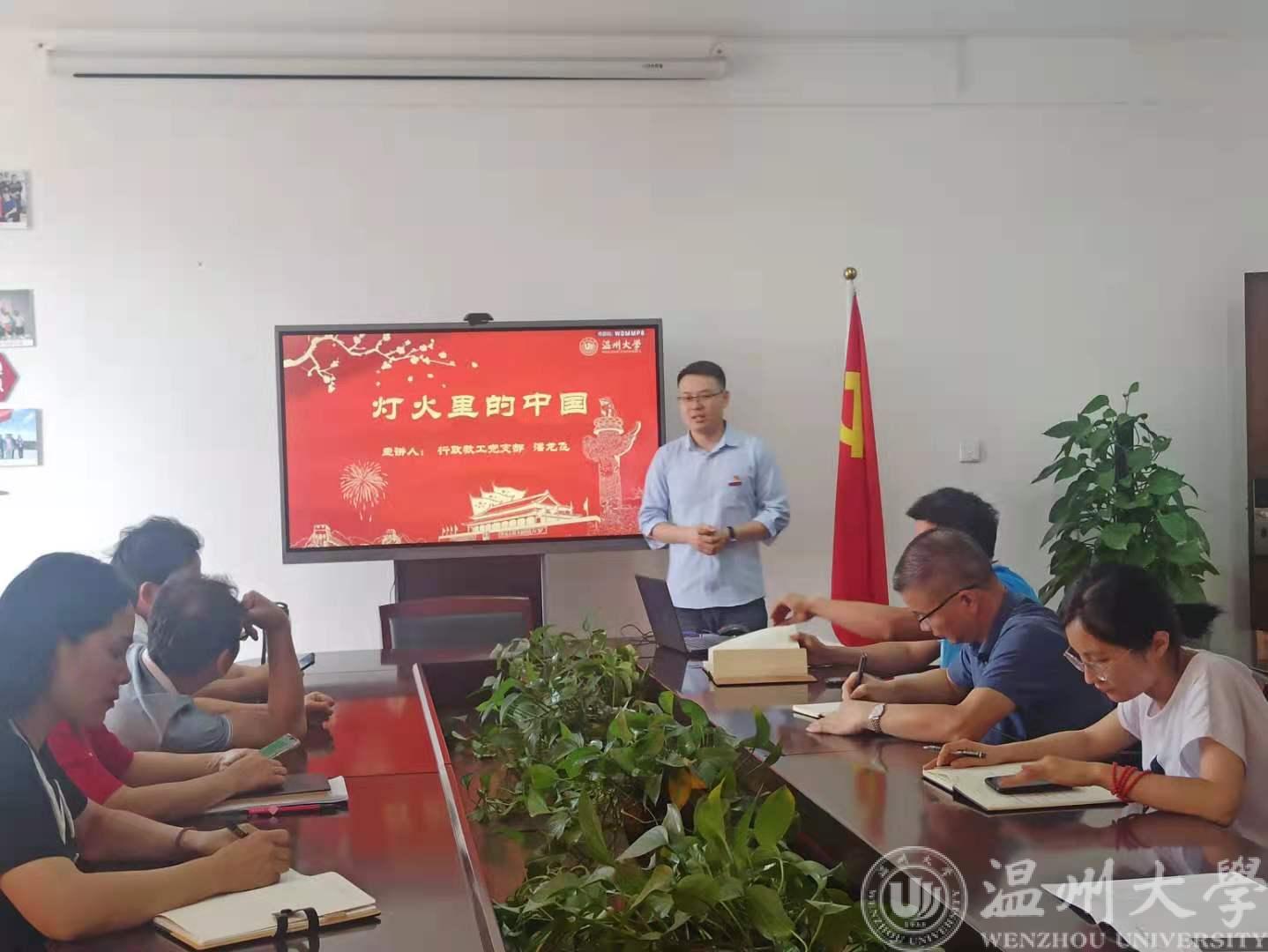 紧接着,由支部党员潘龙飞讲党课。潘龙飞同志是学校党史学习“8090”宣讲员,曾获学校微党课大赛一等奖,这次他带来的微课主题是《灯火里的中国》。“2021年春晚,当我看第一次听到《灯火里的中国》这首温暖而动人的歌曲,脑袋里便一次一次循环播放着,时不时浮现小时候的记忆。依稀记得,那时候会经常停电,很多时候都要点着煤油灯、打着手电筒做作业,现在条件慢慢的变好了很多”,他从《灯火里的中国》这首歌曲出发联想到国家实现14亿人“全民用电”的伟大奇迹,再到全民脱贫攻坚战的胜利,体现了在中国共产党的引领下,中国人民坚强不屈,努力创造幸福生活的伟大精神。