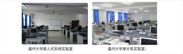 温州大学专业建有 “物联网实验室”、“智能家居实验室”、“模拟电子技术实验室”、“数字电子技术实验室”、“单片机实验室”、“嵌入式系统实验室”等一批专业教学实验室,拥有实验室面积8886平方米,教学仪器设备5340台件,总值2937万元。