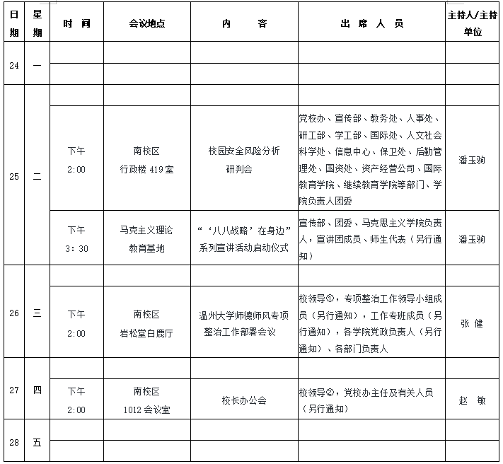 学院第10周行事历