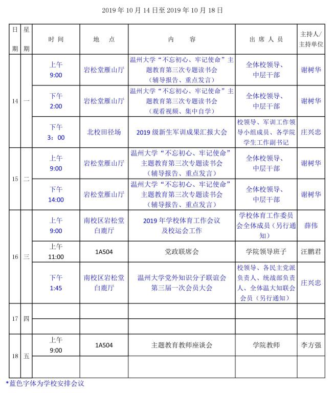 学院第6周行事历