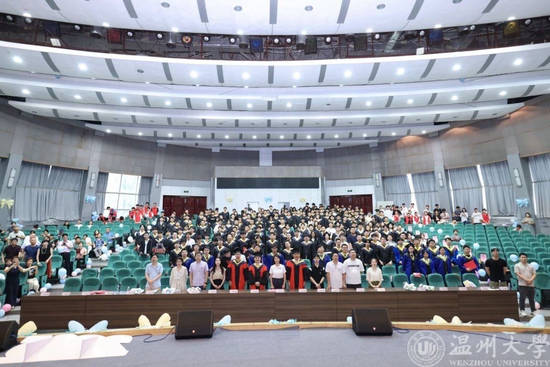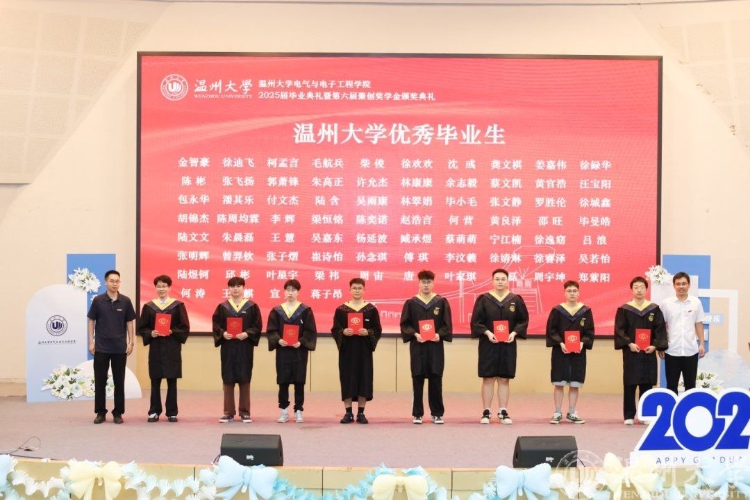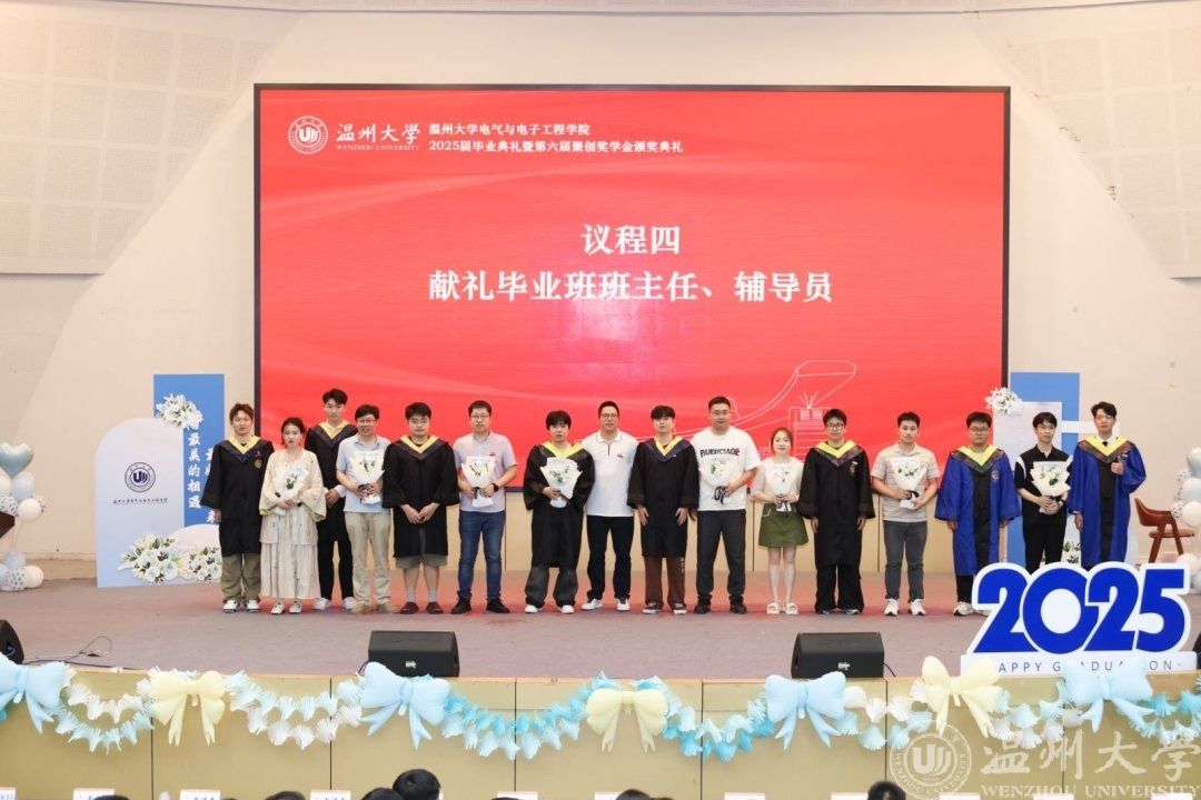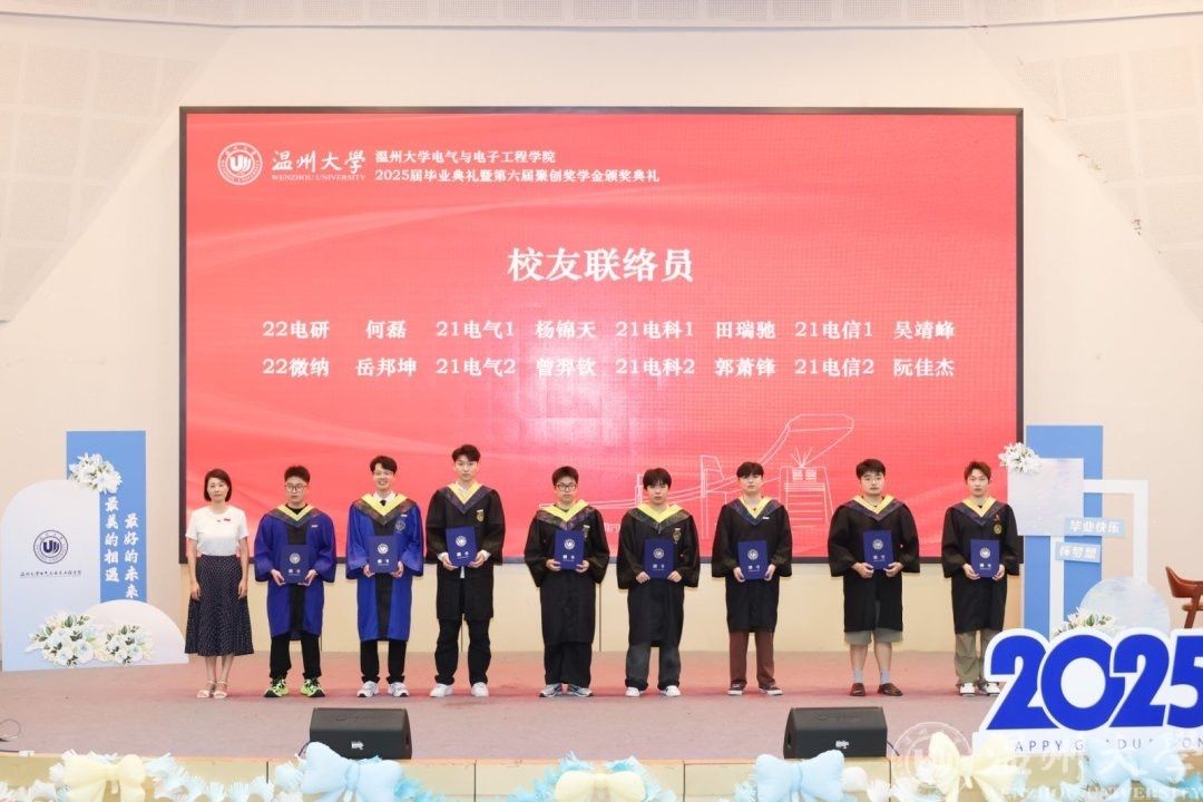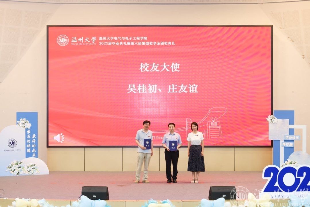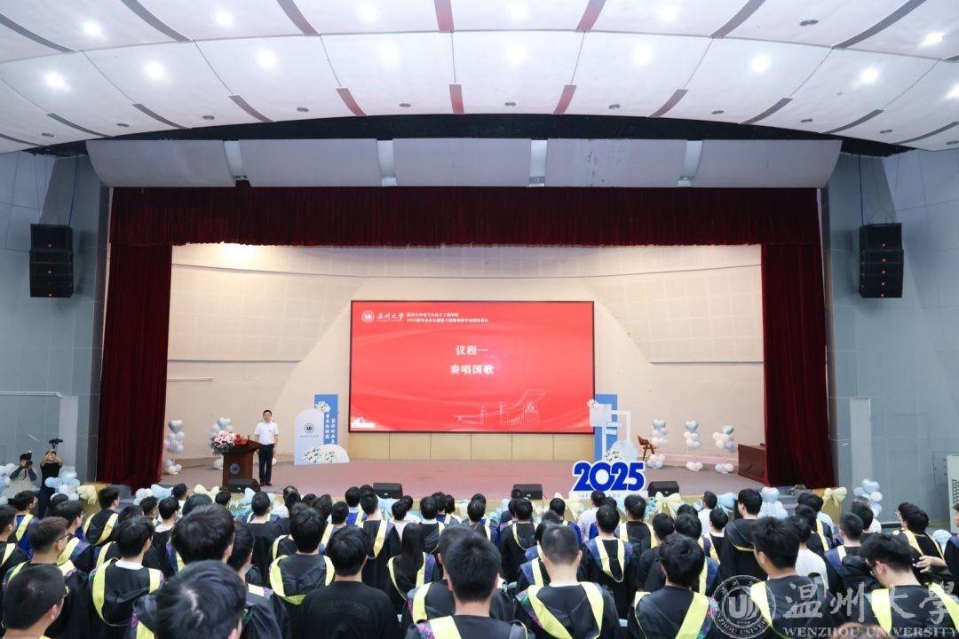 六月的温州,栀子飘香,蝉鸣声声,毕业的离歌与未来的序曲在瓯江之畔交织回响。2025年6月21日下午14时,yl23455永利官网2025届毕业典礼暨第六届聚创奖学金颁奖仪式在南校区9号报告厅隆重举行。全体毕业生、特邀嘉宾吴桂初老师、学院领导班子、系主任、专业负责人、全体辅导员和毕业班班主任等齐聚一堂,共同见证这场青春的告别礼与启航式。
