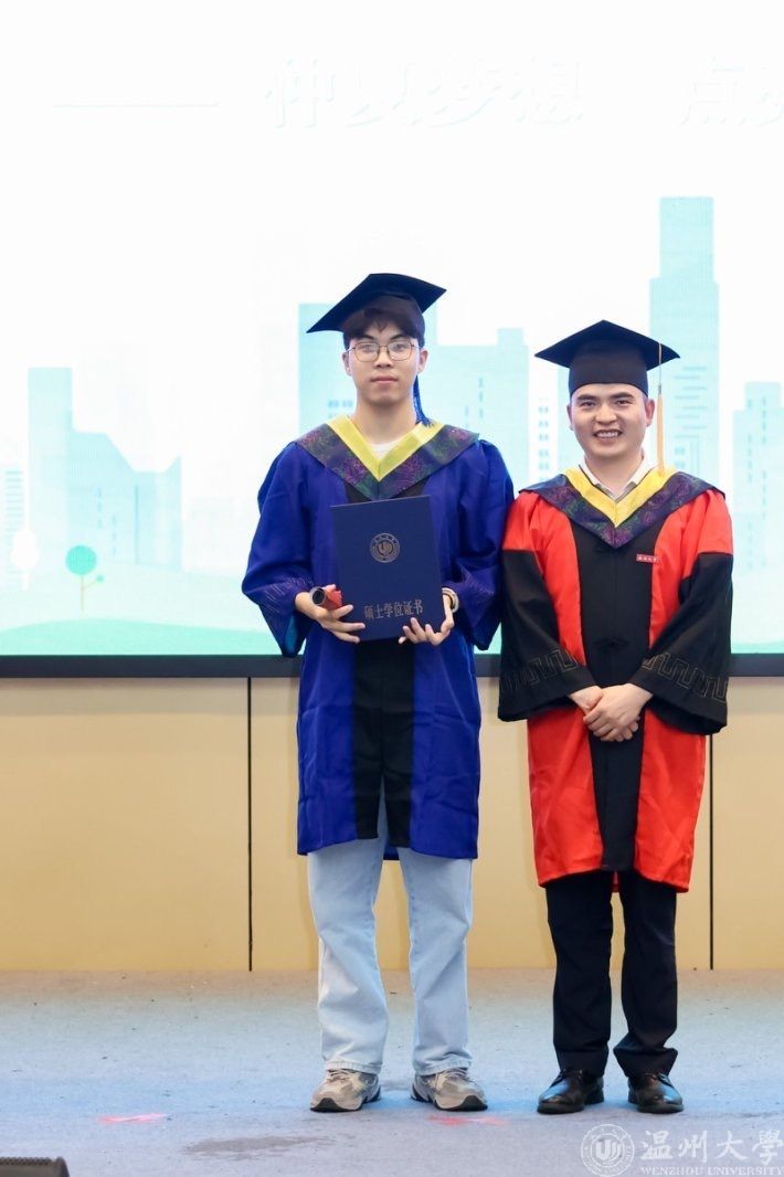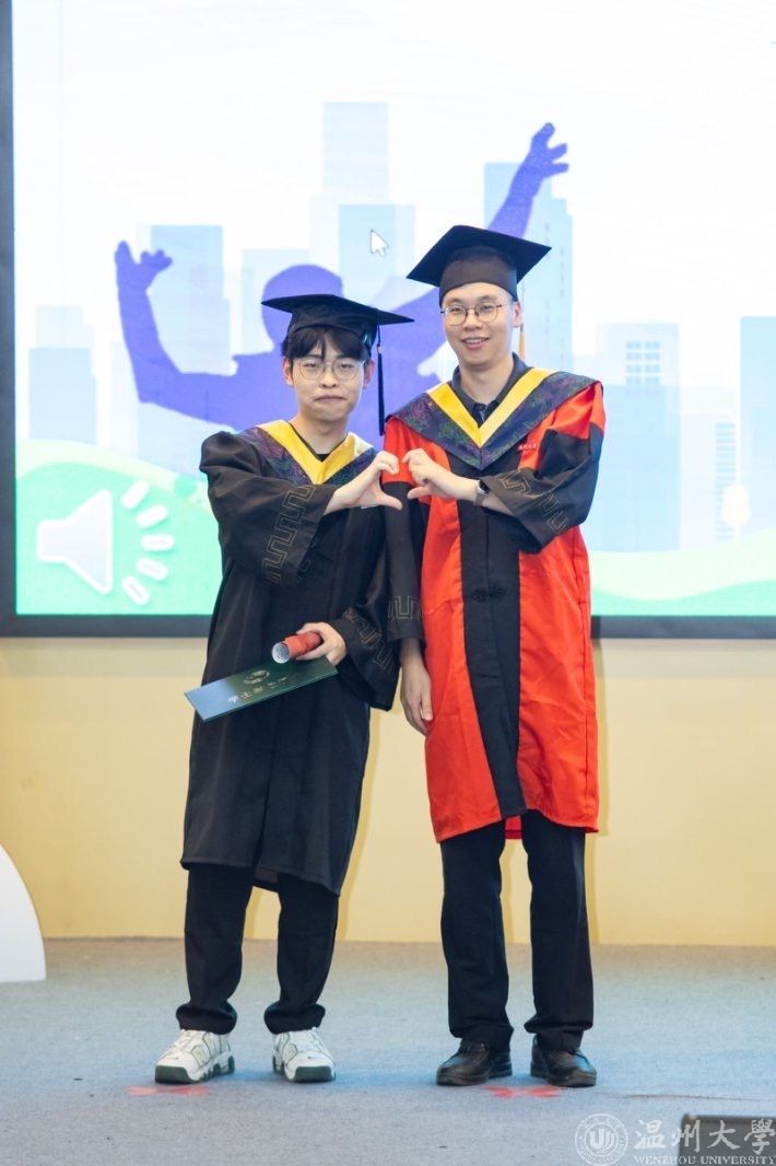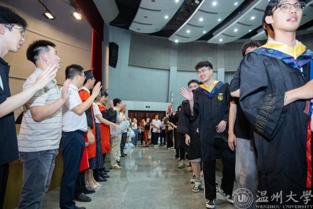 省、校优毕业生表彰环节气氛热烈。校优毕业生代表金智豪、徐迪飞等63名同学,以及省优毕业生胡业俊、应利波等14名同学依次登台,从院领导手中领过荣誉证书。掌声中,一张张年轻的面庞写满对过往的珍视与未来的期许。