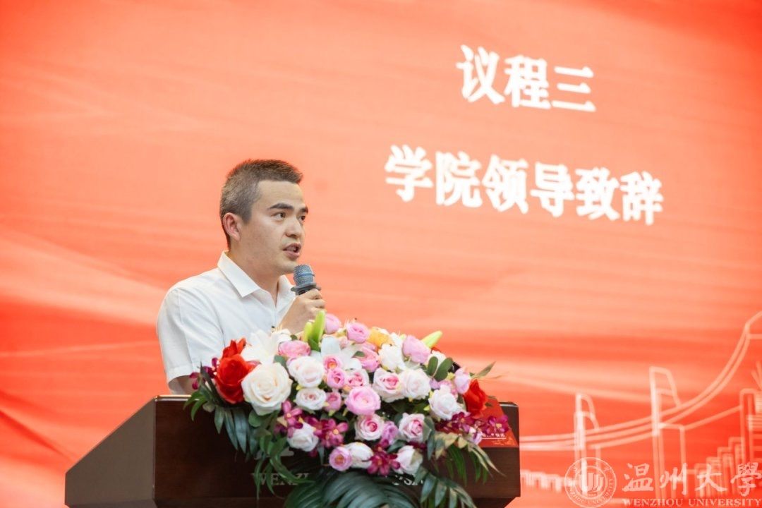 学院副院长舒亮致辞。他细数2025届毕业生成长中的一个个闪光点,勉励同学们走上社会要敢于追梦、敢于破圈、不断“充电”,在各行各业,在祖国大地上书写人生精彩。