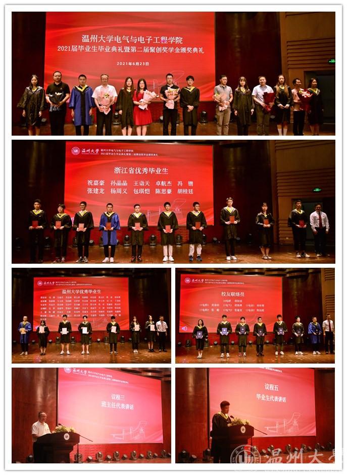 又是一年花开时,又是一年毕业季。6月23日下午2:00,yl23455永利官网2021届毕业生毕业典礼于南校区音乐厅圆满举行。学院院长汪鹏君,党委书记李方强,副院长朱翔鸥、陈孝敬、朱海永,浙江聚创公司董事长、学院聚创奖学金赞助人吴桂初教授,学院各系主任、毕业班班主任、辅导员,以及2021届本研200多名毕业生出席本次毕业典礼。